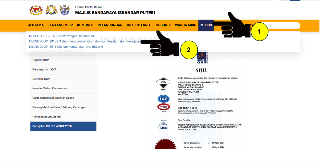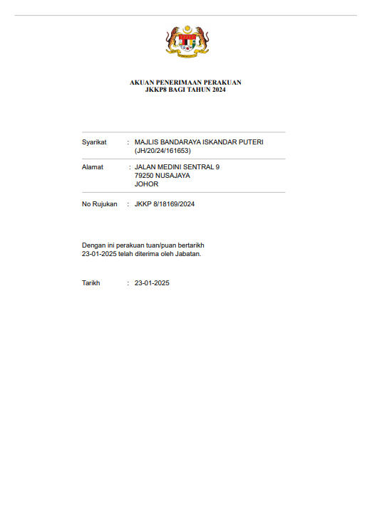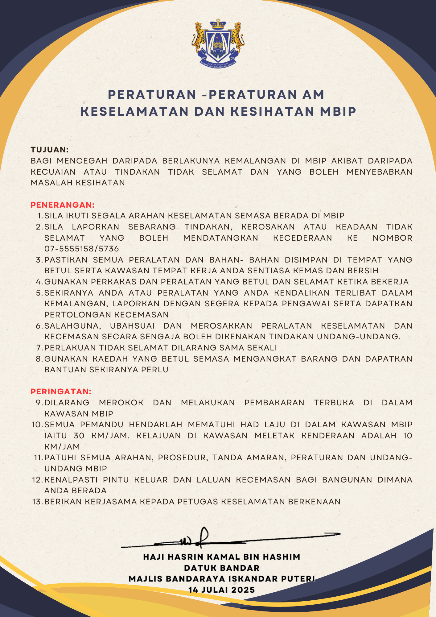 Tempat: Bangunan Pejabat Majlis Bandaraya Iskandar Puteri, Medini