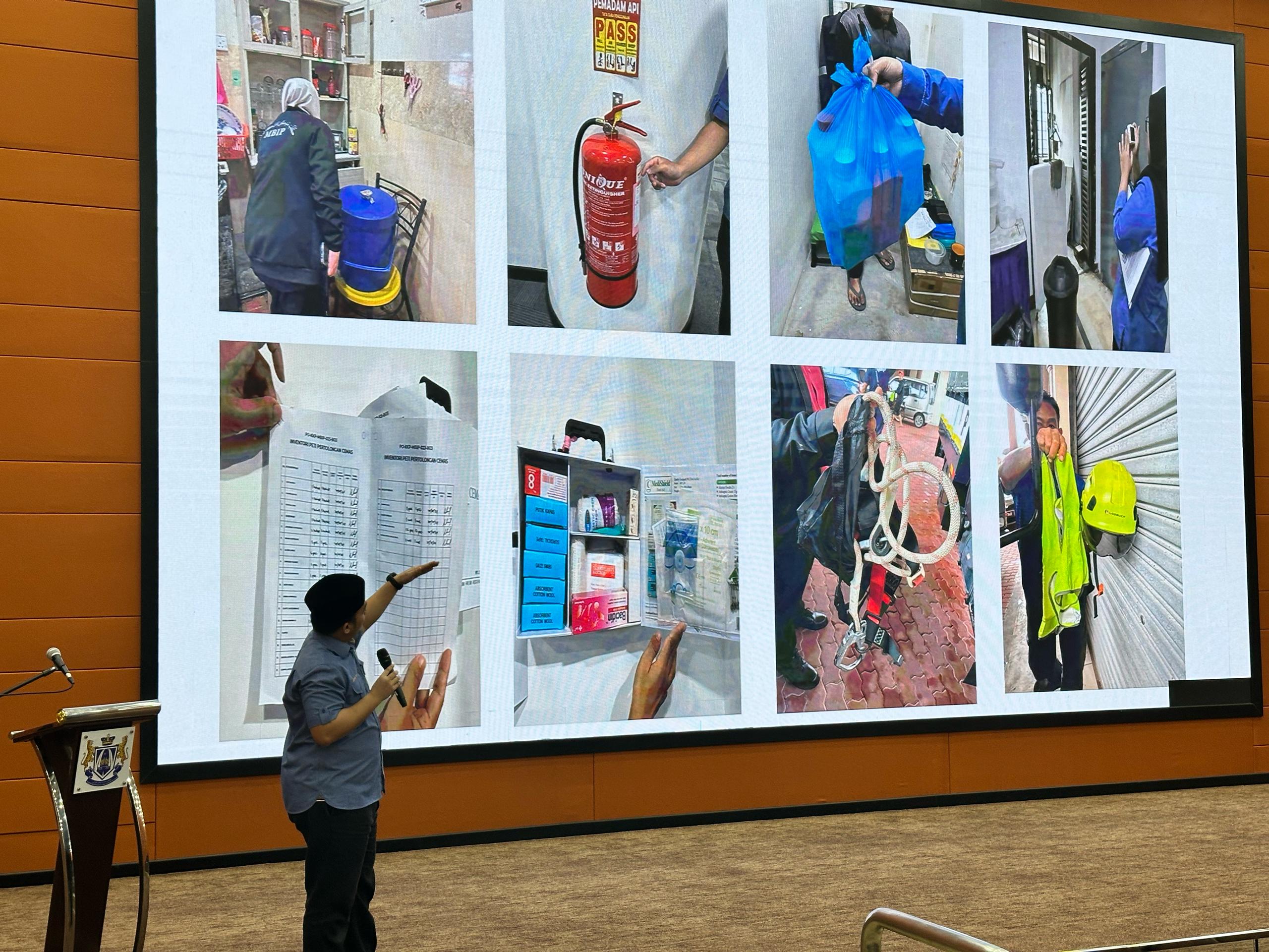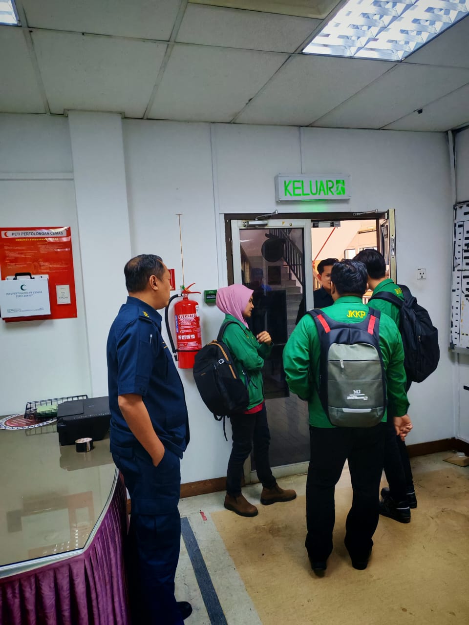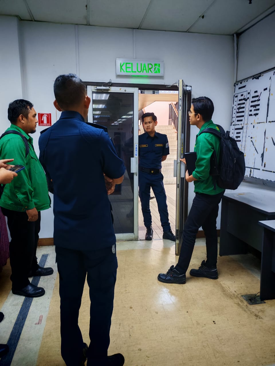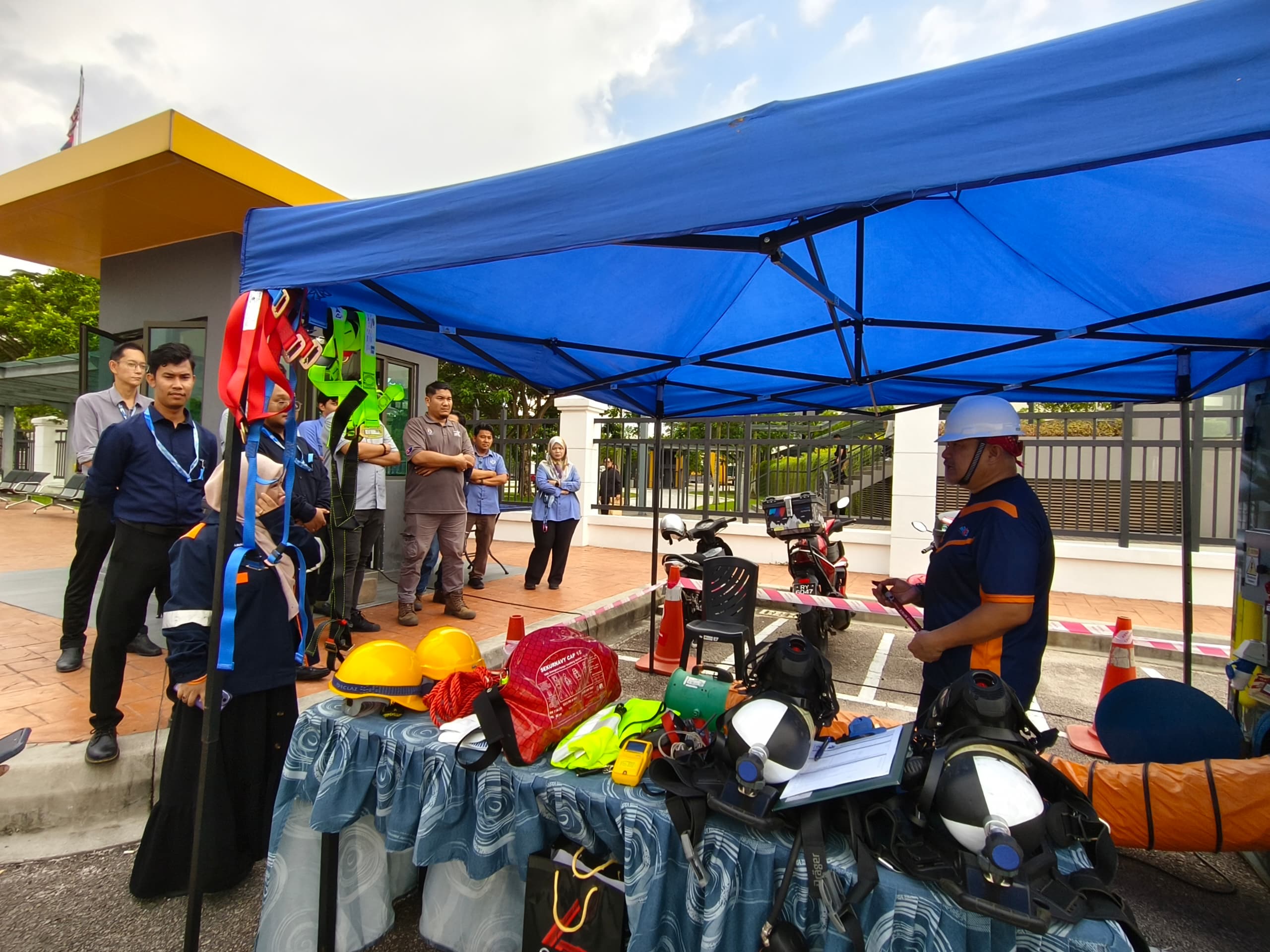 Taklimat keselamatan disampaikan mengenai langkah awal jika berlaku kebakaran dan cara menyelamatkan diri. Anggota bomba turut memberi tunjuk ajar: