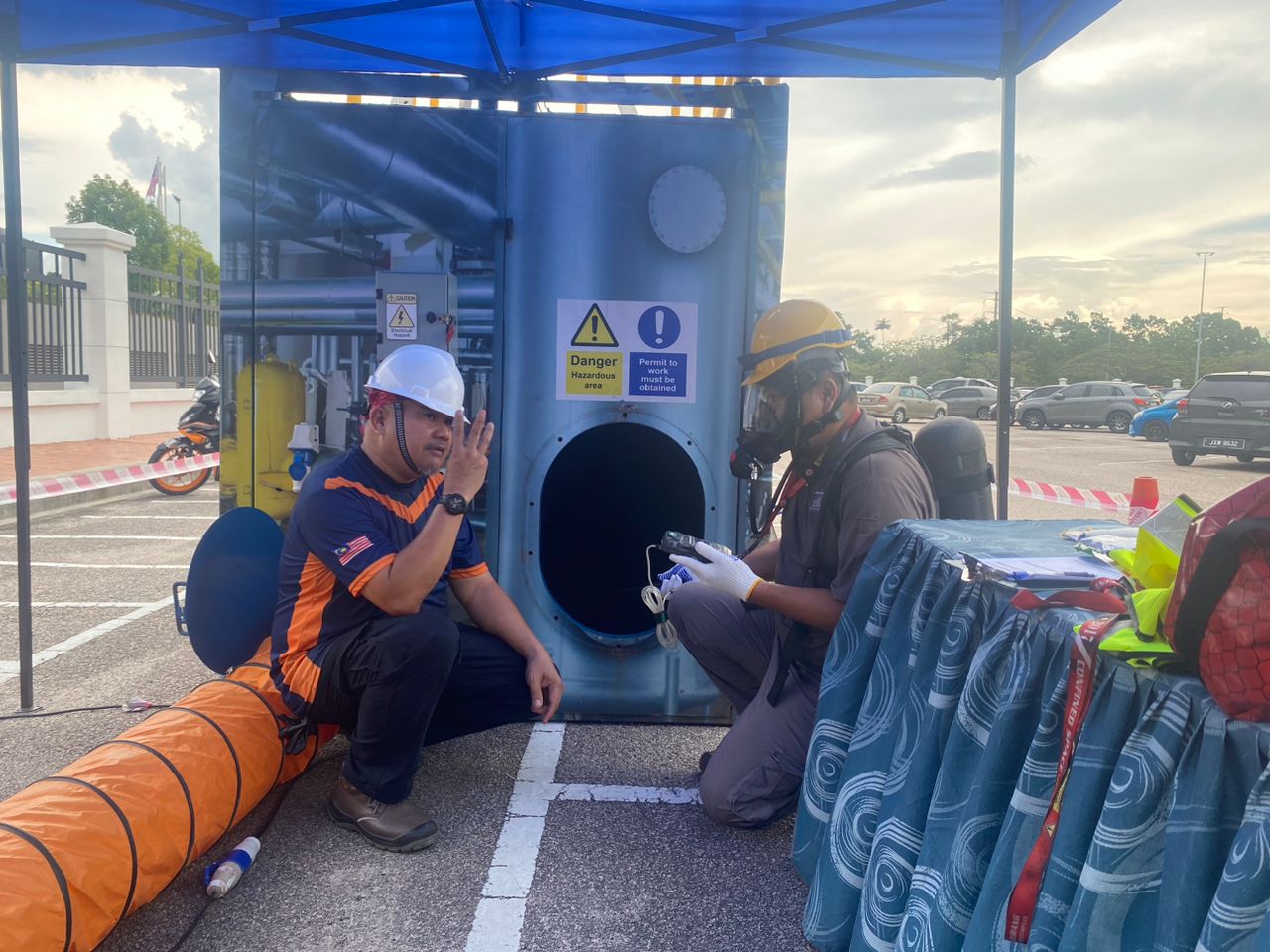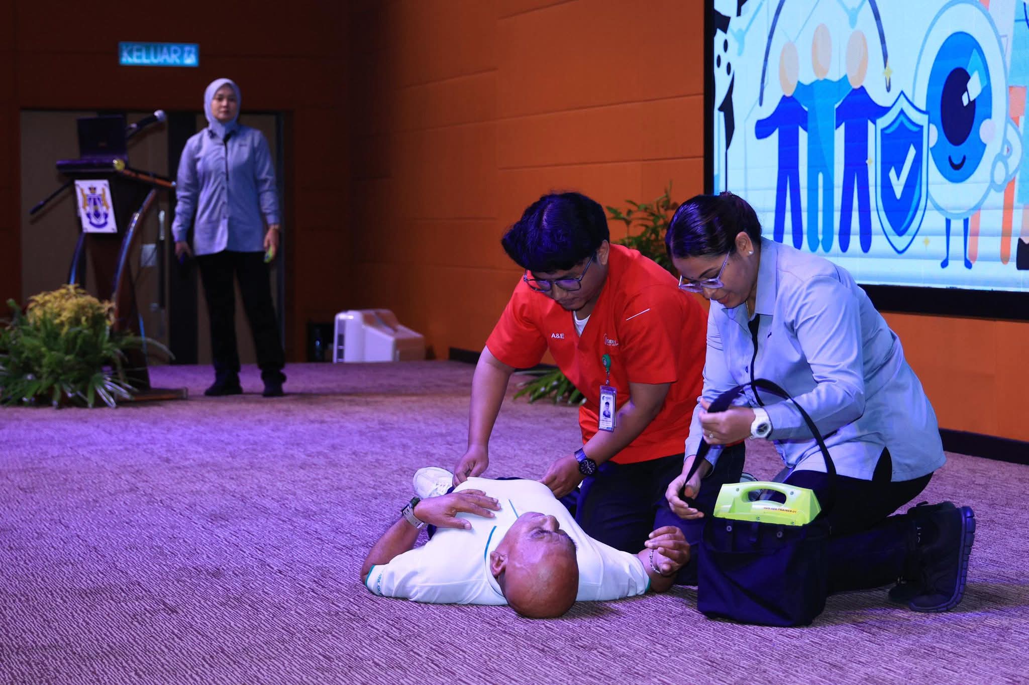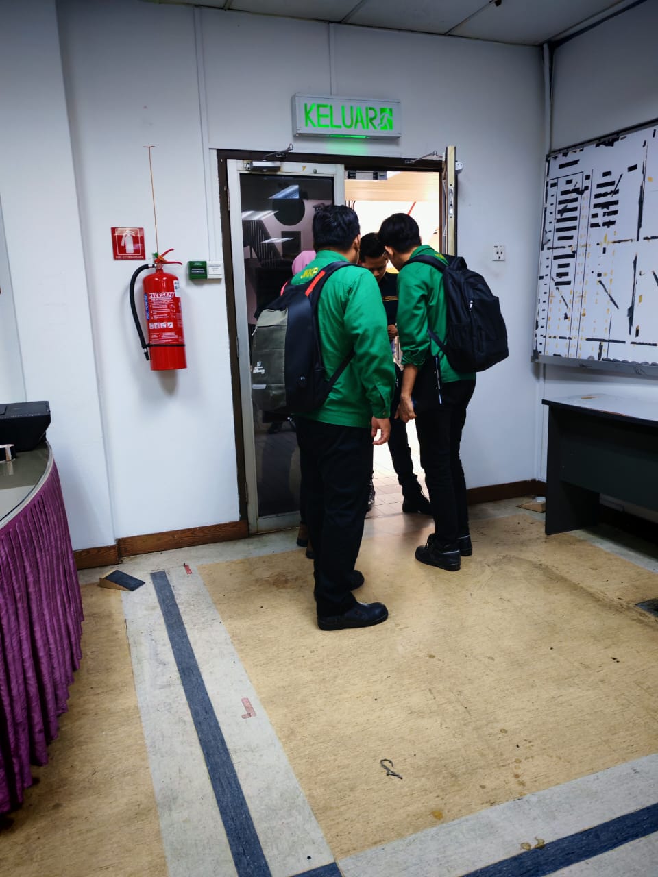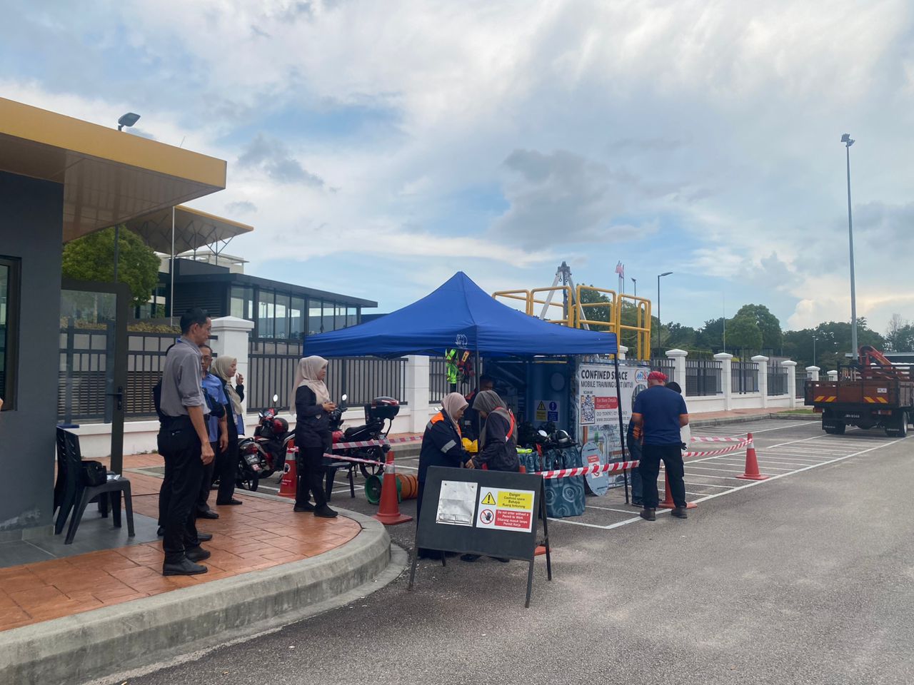 Taklimat keselamatan disampaikan mengenai langkah awal jika berlaku kebakaran dan cara menyelamatkan diri. Anggota bomba turut memberi tunjuk ajar: