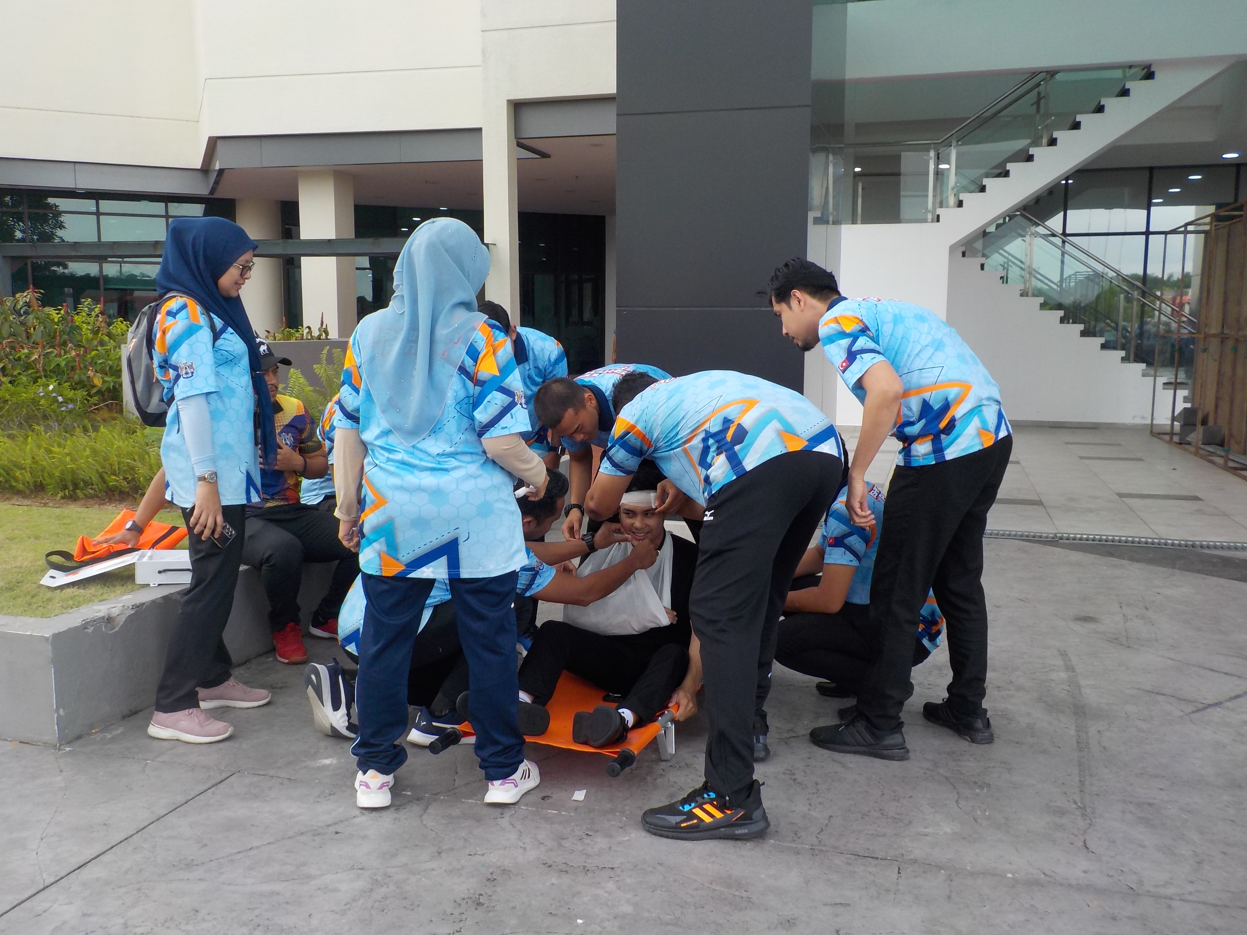 Proses pengungsian bangunan (building evacuation) direkodkan untuk analisis dan panduan latihan seterusnya. Para pemerhati melakukan headcount bagi memastikan semua pekerja keluar dengan selamat.